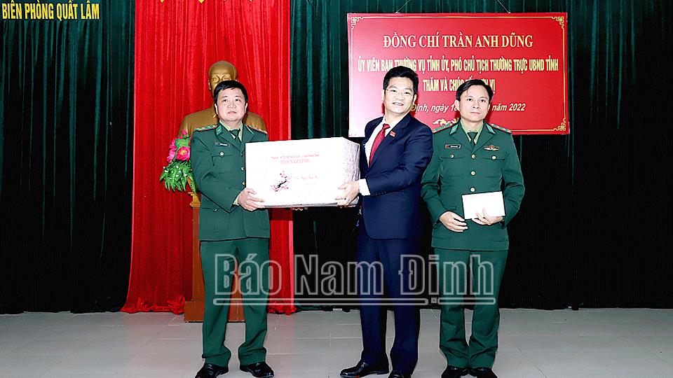 | Đồng chí Trần Anh Dũng, Ủy viên Ban TVTU, Phó Chủ tịch Thường trực UBND tỉnh tặng quà cán bộ, chiến sĩ Đồn Biên phòng Quất Lâm (Giao Thủy). |