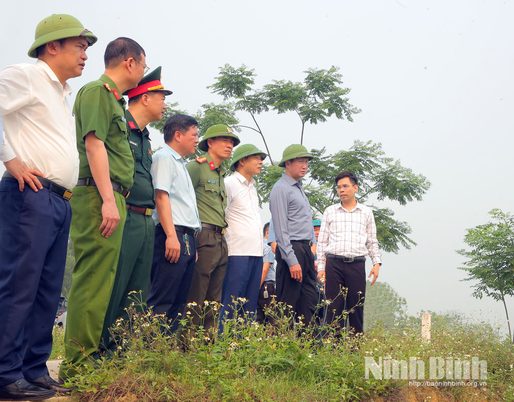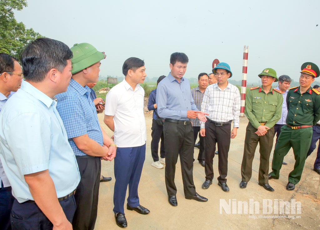 Đồng chí Bí thư Tỉnh ủy Trần Huy Tuấn cùng đoàn kiểm tra tại Âu Chanh tại K4+ 360 đê Trường Yên, phường Tây Hoa Lư.