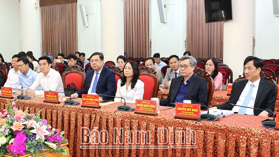 Tham dự buổi làm việc về phía tỉnh Nam Định có các đồng chí: Đặng Khánh Toàn, Bí thư Tỉnh uỷ; Lê Quốc Chỉnh, Phó Bí thư Thường trực Tỉnh uỷ, Trưởng đoàn Đoàn đại biểu Quốc hội tỉnh, Chủ tịch HĐND tỉnh; Phạm Đình Nghị, Phó Bí thư Tỉnh uỷ, Chủ tịch UBND tỉnh và các đồng chí Ủy viên Ban TVTU.