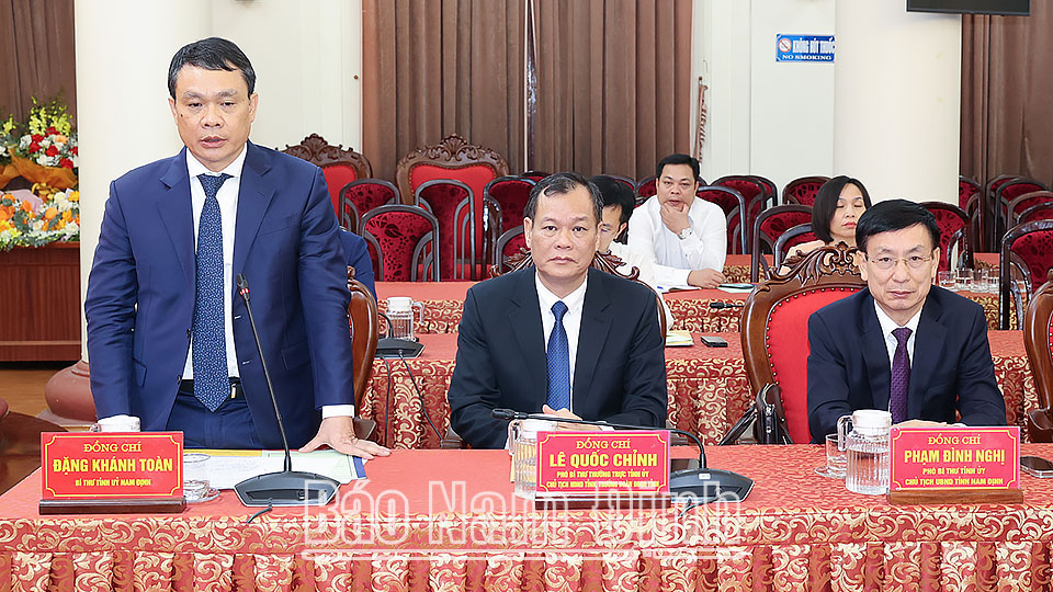 Thay mặt Ban TVTU, đồng chí Bí thư Tỉnh uỷ Đặng Khánh Toàn tiếp thu những ý kiến chỉ đạo của đồng chí Lê Minh Hưng, đồng thời trân trọng cảm ơn sự quan tâm lãnh đạo, chỉ đạo thường xuyên, liên tục của Bộ Chính trị, Ban Bí thư đối với Đảng bộ tỉnh Nam Định. Đồng chí Bí thư Tỉnh uỷ mong muốn tiếp tục nhận được sự quan tâm, tạo điều kiện của Trung ương và luôn phát huy truyền thống đoàn kết, không ngừng nỗ lực cố gắng để Nam Định ngày càng phát triển, xứng đáng với tiềm năng, lợi thế của địa phương nằm ở trung tâm vùng Nam đồng bằng sông Hồng./.