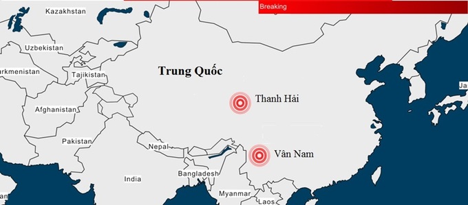 Đến 2h04 hôm nay, cách vị trí động đất ở Vân Nam khoảng 1.200 km, một trận động đất mạnh 7,4 độ làm rung chuyển tỉnh Thanh Hải, nơi dân cư thưa thớt ở tây bắc Trung Quốc, tiếp đó là nhiều đợt dư chấn. Tâm chấn cả hai trận động đất đều nông.