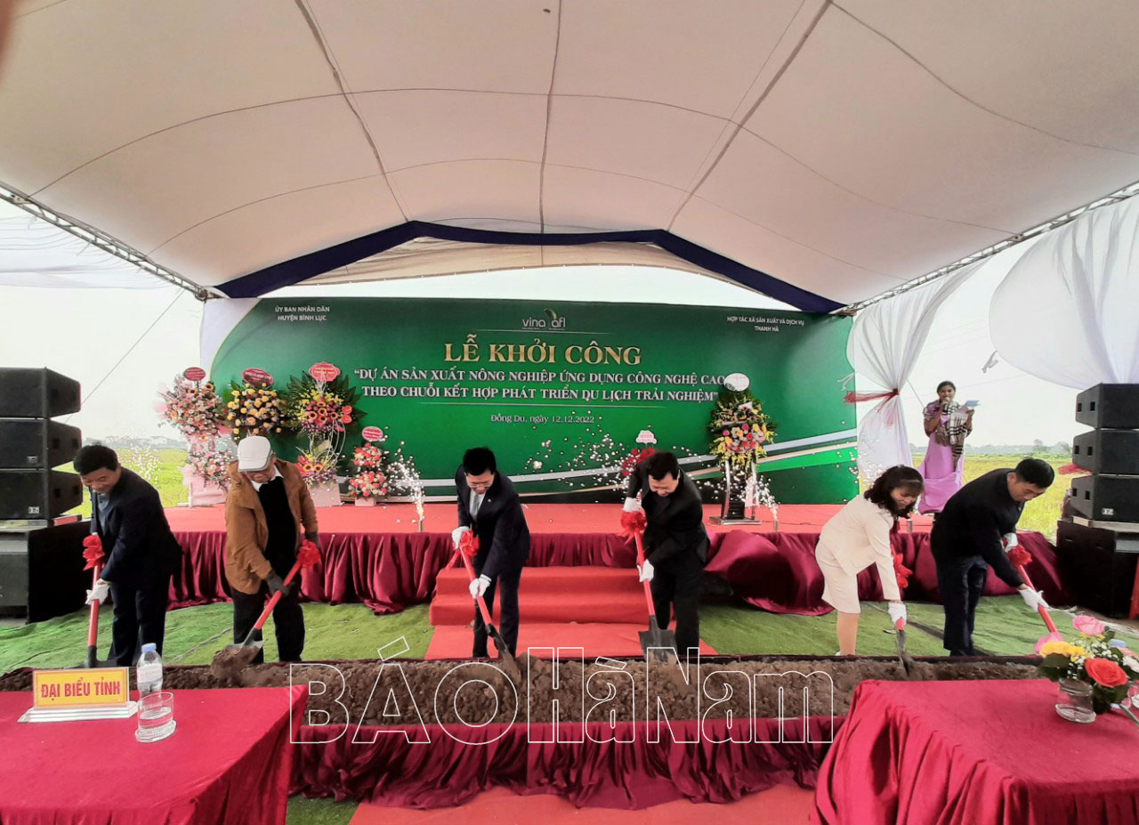 Sáng 12/12, UBND huyện Bình Lục đã phối hợp với HTX sản xuất và dịch vụ nông nghiệp Thanh Hà ( thành phố Hà Nội), tổ chức động thổ Dự án sản xuất nông nghiệp ứng dụng công nghệ cao (NNUDCNC) theo chuỗi kết hợp phát triển du lịch trải nghiệm tại xã Đồng Du (Bình Lục). Tham dự lễ động thổ dự án có các đồng chí lãnh đạo Sở Nông nghiệp và Phát triển nông thôn, Huyện ủy, UBND huyện Bình Lục.