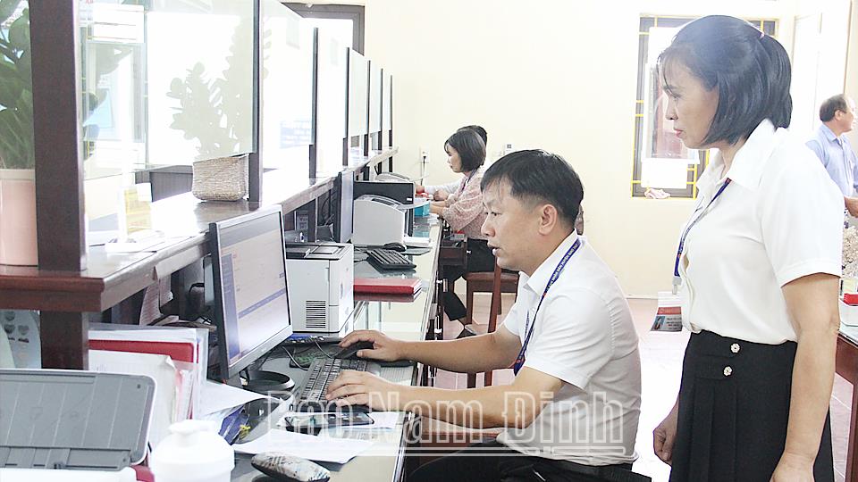 | Cán bộ Trung tâm giao dịch hành chính huyện Giao Thủy tập huấn kỹ năng số cho cán bộ công chức xã Giao Long. |