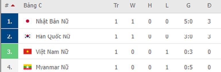 ĐT nữ Việt Nam thất bại trước Hàn Quốc ở cúp châu Á