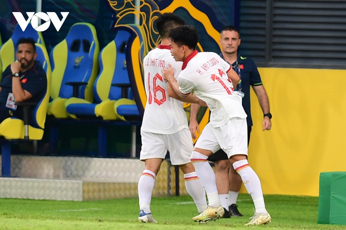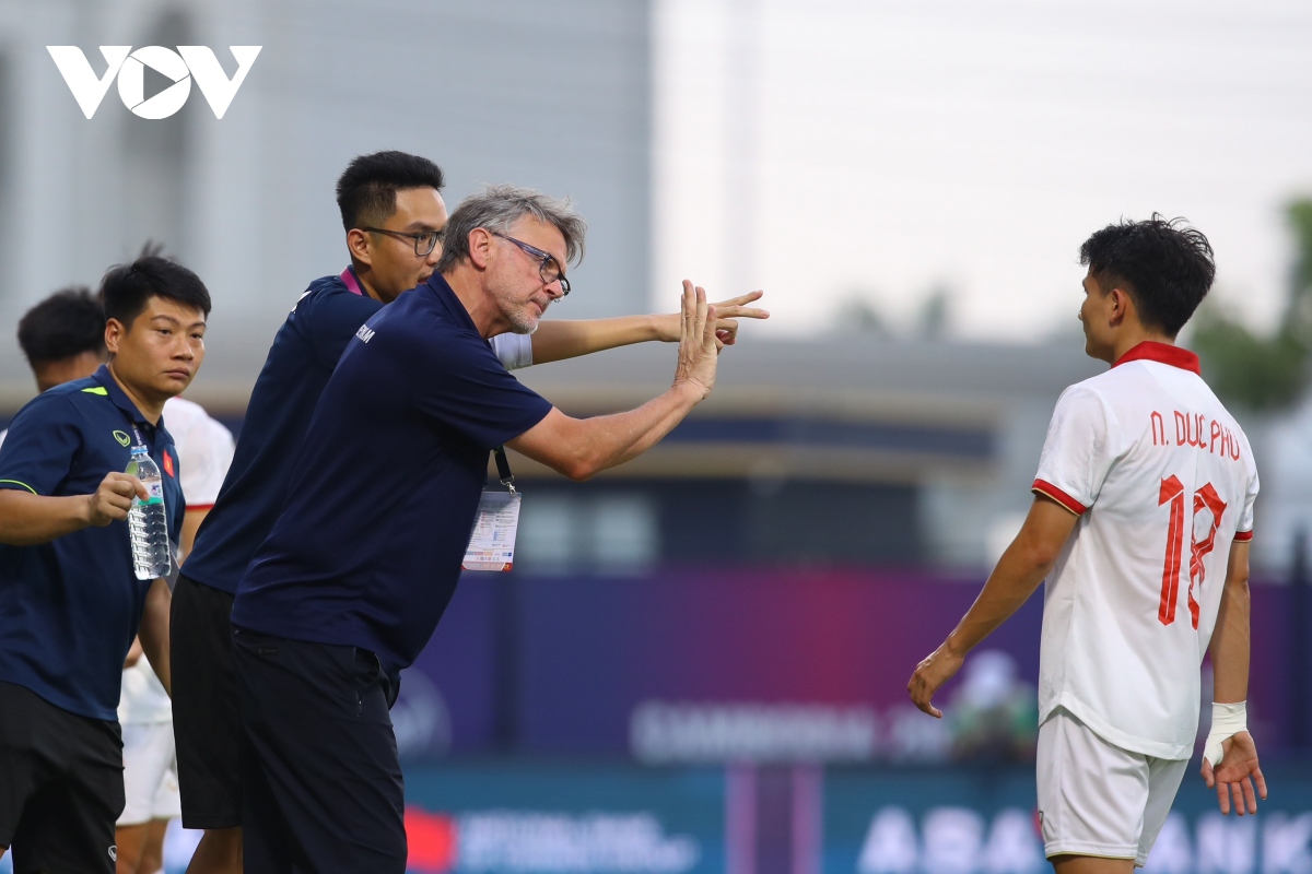 Có thể thấy, các học trò HLV Philippe Troussier loay hoay tìm mọi cách để tìm đường vào khung thành đối phương, từ các bài đánh biên, cho tới đập nhả trung lộ hay sút xa, nhưng đều chưa có sự hiệu quả cần thiết. Phải đến khi Văn Tùng mở tỷ số ở phút 35 thì mọi áp lực mới được giải tỏa, từ các cầu thủ trong sân, cho tới Ban huấn luyện bên ngoài đường piste.