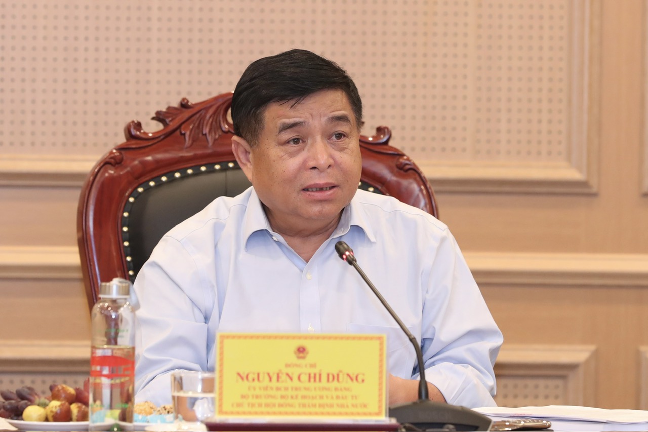 | Bộ trưởng Bộ KH&ĐT Nguyễn Chí Dũng, Chủ tịch Hội đồng Thẩm định Nhà nước thẩm định Báo cáo nghiên cứu tiền khả thi Dự án đường sắt tốc độ cao trên trục Bắc - Nam, phát biểu tại phiên họp. |