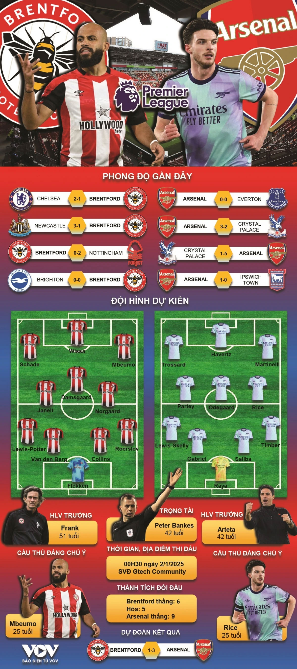 Dự đoán kết quả và đội hình ra sân trận Brentford vs Arsenal