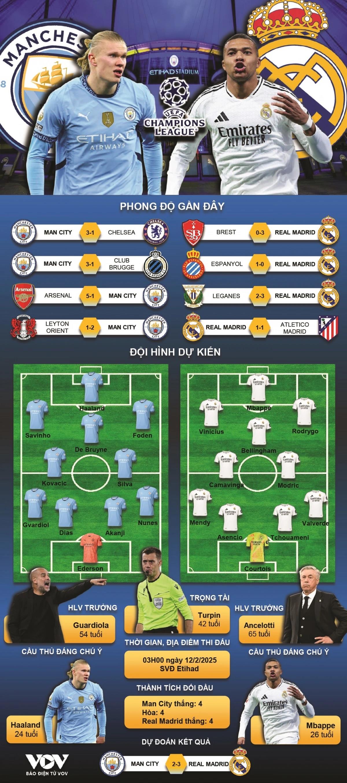 Dự đoán kết quả và đội hình ra sân trận Man City vs Real Madrid