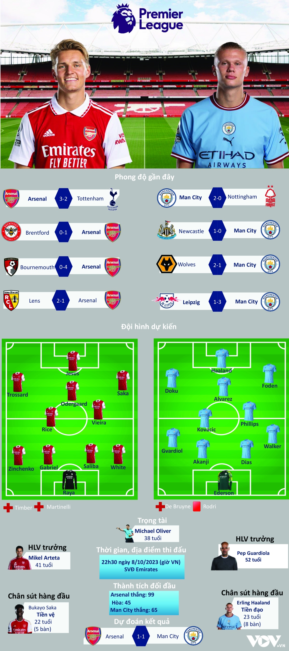 Dự đoán tỷ số, đội hình xuất phát trận Arsenal - Man City