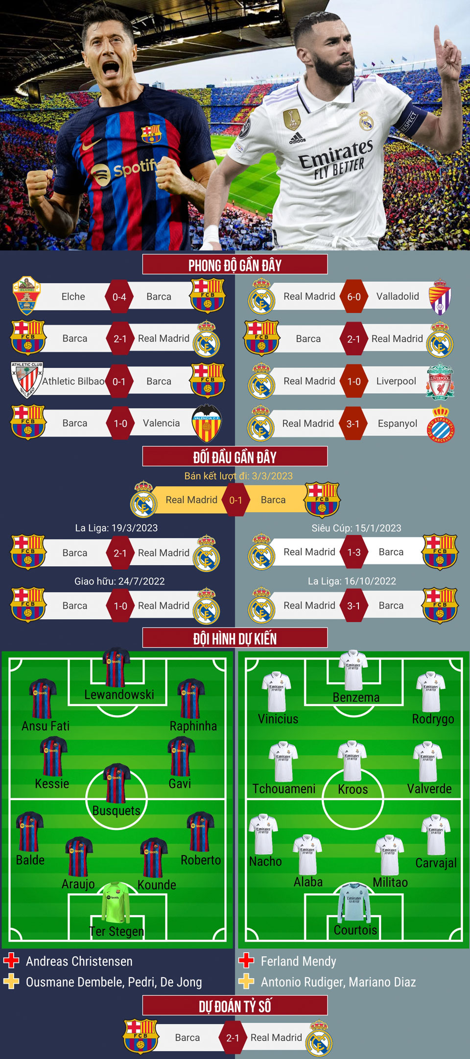 Dự đoán tỷ số, đội hình xuất phát trận Barca - Real Madrid