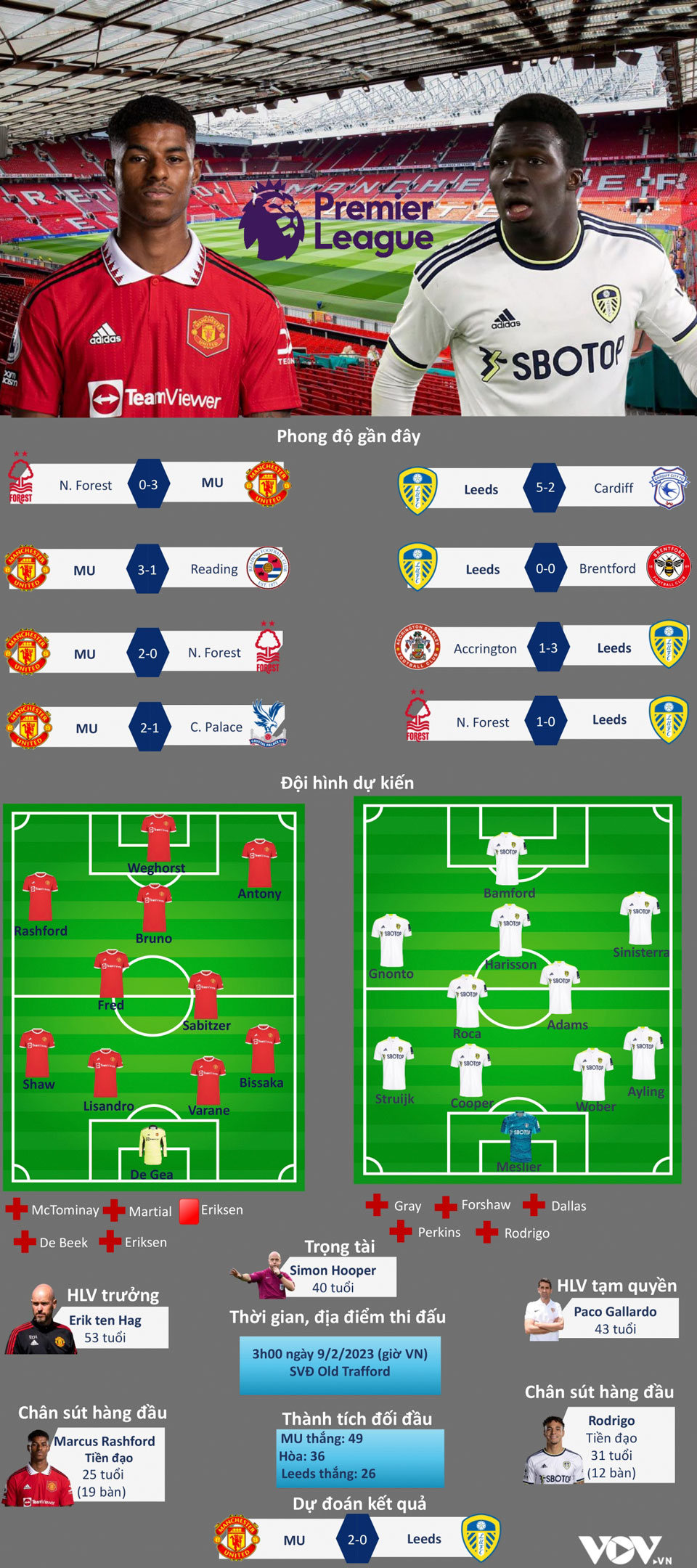 Dự đoán tỷ số, đội hình xuất phát trận MU – Leeds