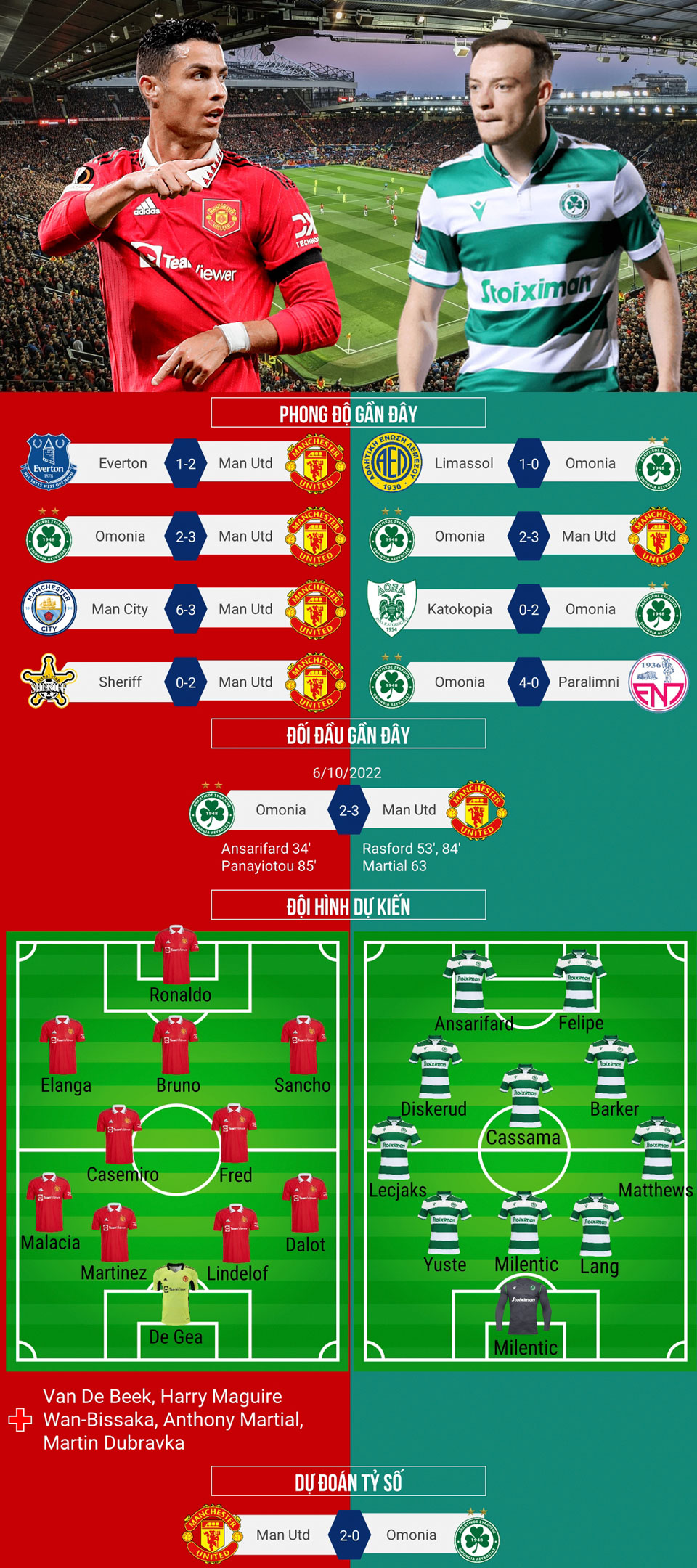 Dự đoán tỷ số, đội hình xuất phát trận MU - Omonia