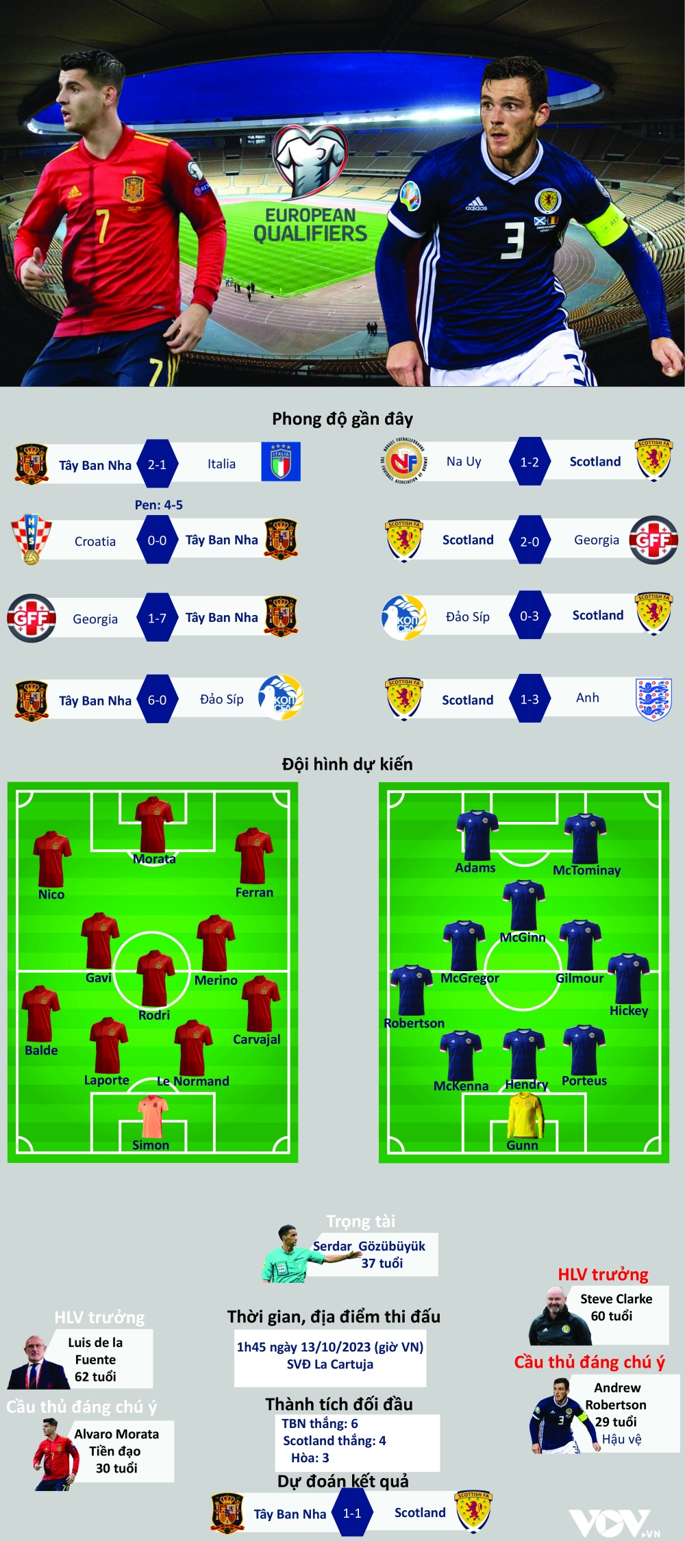 Dự đoán tỷ số, đội hình xuất phát trận Tây Ban Nha – Scotland