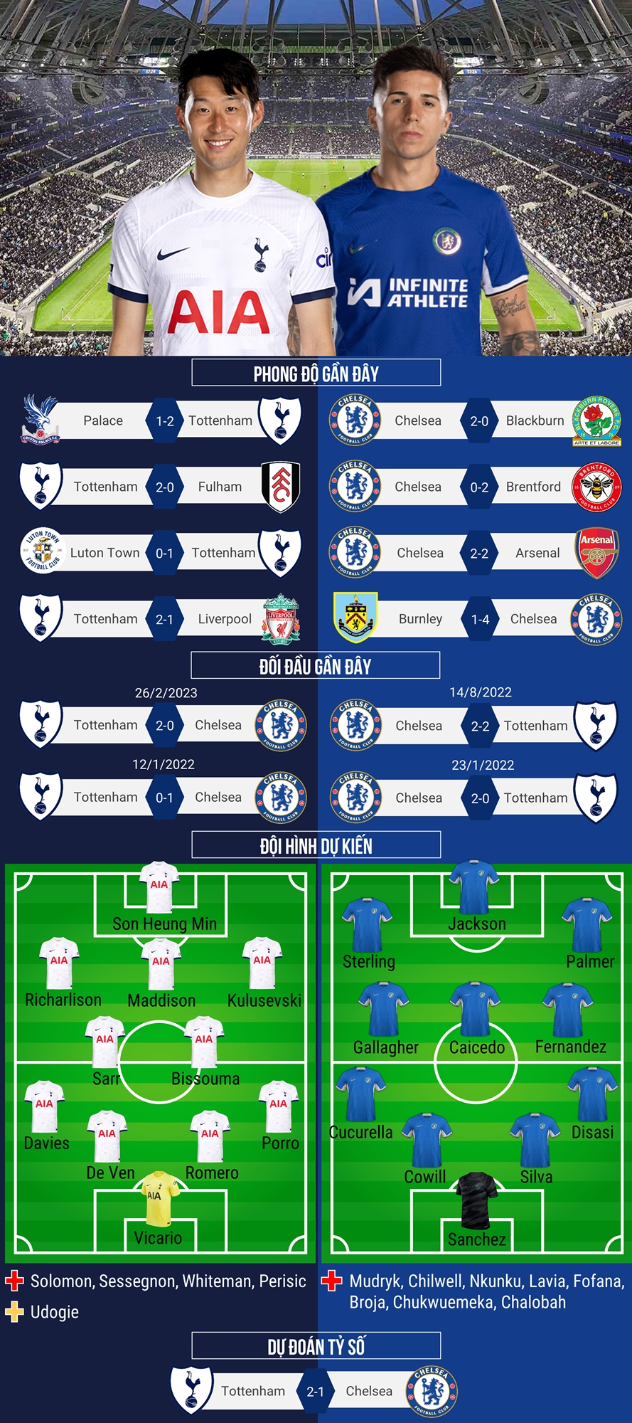 Dự đoán tỷ số, đội hình xuất phát trận Tottenham - Chelsea