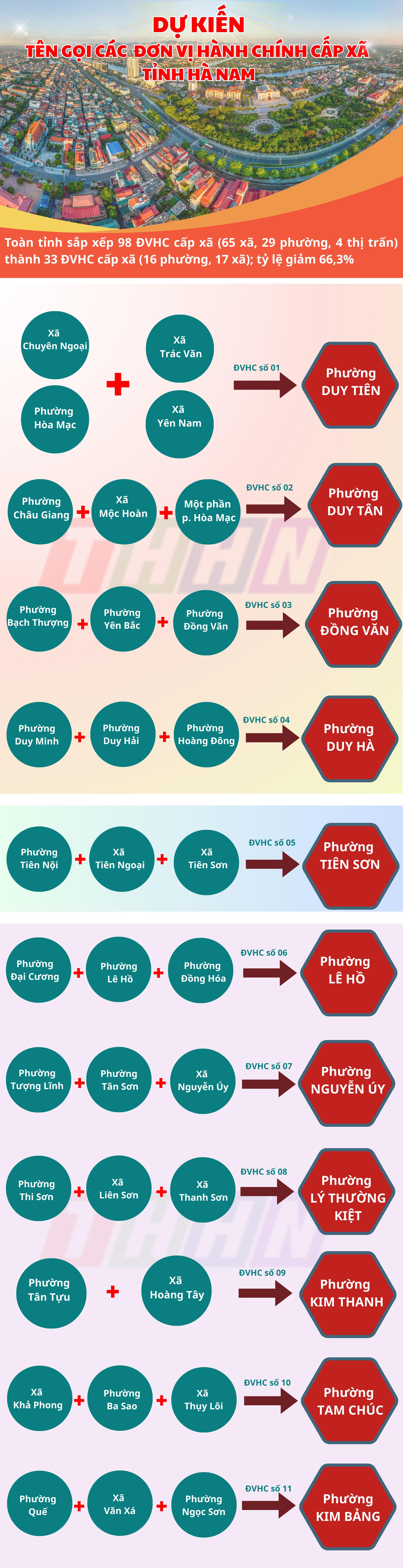 Dự kiến tên gọi các đơn vị hành chính cấp xã tỉnh Hà Nam