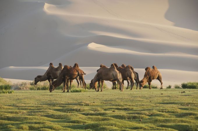Những con lạc đà trên sa mạc Gobi ở Mông Cổ. Ảnh: Tersina Shieh
