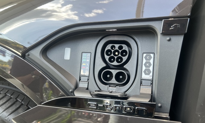 Cổng sạc trên mẫu xe điện Audi Q8 e-tron. Ảnh: Hồ Tân