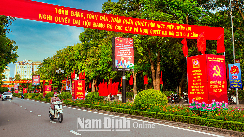 Đường phố Thành Nam và các huyện rực rỡ cờ hoa chào mừng Đại hội đại biểu Đảng bộ tỉnh lần thứ XX (nhiệm kỳ 2020-2025)