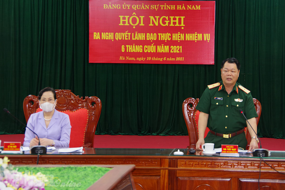 Phát biểu tại hội nghị, Thiếu tướng Hà Tất Đạt, Ủy viên Đảng ủy, Phó Tư lệnh Quân khu 3 đánh giá cao những kết quả đạt được trong công tác lãnh đạo, chỉ đạo của ĐUQS tỉnh 6 tháng đầu năm. Đề nghị ĐUQS tỉnh tiếp tục phát huy tốt kết quả đạt được, đề ra giải pháp phù hợp khắc phục tồn tại, hạn chế. Cùng đó, thực hiện nghiêm quy định về phòng, chống dịch, tuyệt đối không để dịch lây lan vào đơn vị; tập trung quán triệt, triển khai thực hiện nghiêm túc, hiệu quả các nghị quyết, chỉ thị, hướng dẫn của cấp trên; tham mưu cho cấp ủy, chính quyền lãnh đạo, chỉ đạo thực hiện tốt nhiệm vụ công tác QS, QPĐP; thực hiện có hiệu quả chính sách hậu phương quân đội; triển khai tốt các khâu, các bước trong công tác tuyển quân năm 2021; nâng cao chất lượng công tác huấn luyện, diễn tập, hội thi, hội thao; khả năng SSCĐ trong LLVT tỉnh… thực hiện thắng lợi mọi nhiệm vụ được giao.
