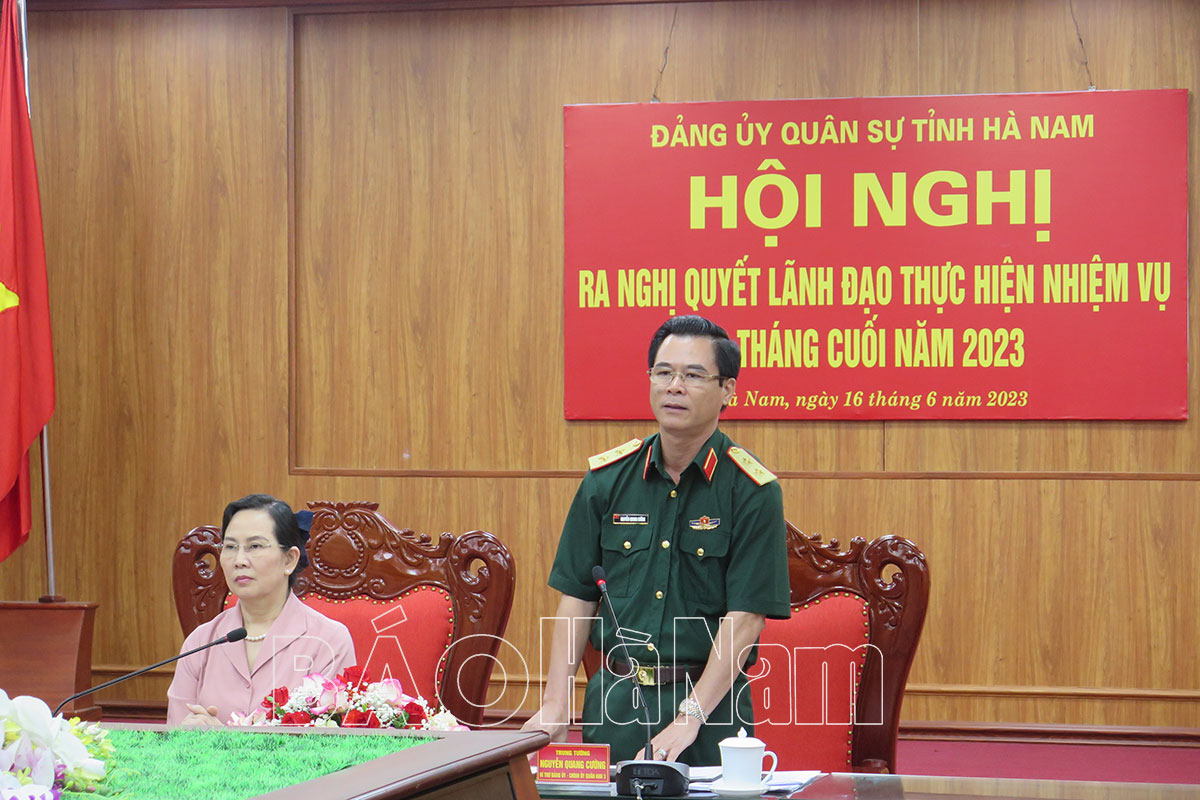 Phát biểu chỉ đạo tại hội nghị, Trung tướng Nguyễn Quang Cường, Bí thư Đảng uỷ, Chính uỷ Quân khu 3 ghi nhận, biểu dương những kết quả đạt được trong lãnh đạo, chỉ đạo thực hiện nhiệm vụ QP-QSĐP của ĐUQS tỉnh. Đồng chí nhấn mạnh: 6 tháng cuối năm, trong bối cảnh tình hình thế giới, khu vực dự báo tiếp tục diễn biến phức tạp, khó lường, các thế lực thù địch, phản động tăng cường các hoạt động chống phá. Đề nghị ĐUQS tỉnh tiếp tục tham mưu giúp Tỉnh uỷ, HĐND, UBND tỉnh lãnh đạo, chỉ đạo, thực hiện thắng lợi nhiệm vụ QP, QSĐP; chỉ đạo tổ chức thành công cuộc diễn tập KVPT các cấp, tập trung xây dựng KVPT tỉnh vững mạnh.