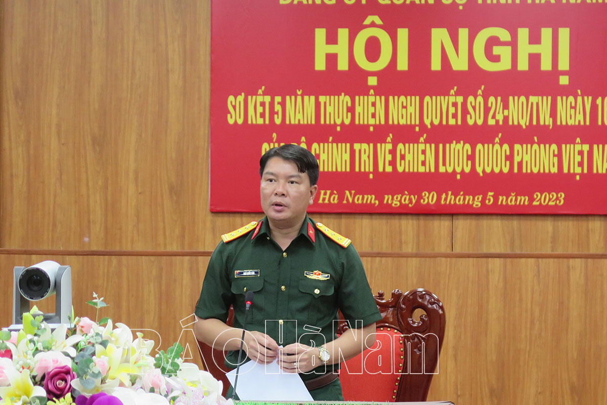 Theo đánh giá, 5 năm qua Đảng uỷ, Bộ CHQS tỉnh đã chủ động tham mưu giúp Tỉnh uỷ tập trung lãnh đạo, chỉ đạo triển khai sâu rộng Nghị quyết số 24-NQ/TW, ngày 16/4/2018 của Bộ Chính trị về Chiến lược Quốc phòng Việt Nam, đạt được kết quả toàn diện. Qua việc học tập, triển khai nghị quyết, góp phần nâng cao nhận thức, trách nhiệm của cán bộ, đảng viên, các tầng lớp nhân dân và LLVT tỉnh về Chiến lược Quốc phòng Việt Nam về hai nhiệm vụ chiến lược xây dựng và bảo vệ Tổ quốc trong tình hình mới.