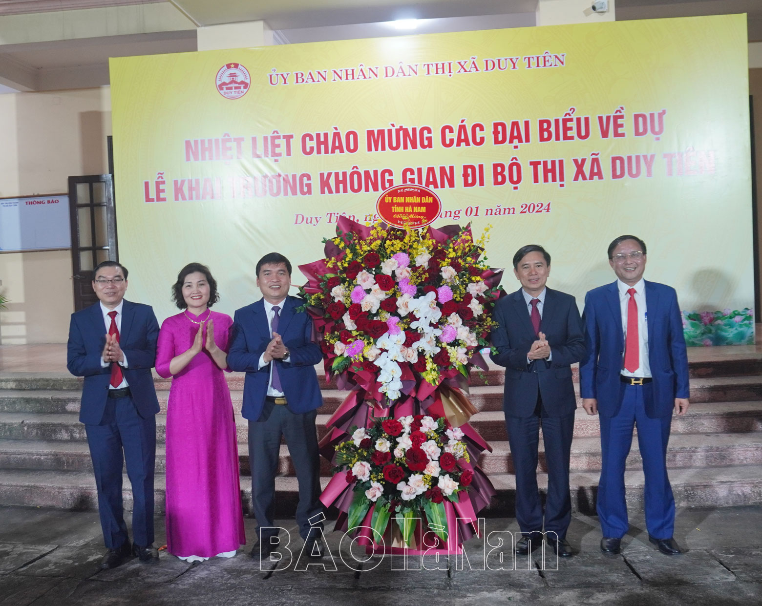 Tối ngày 20/1, tại Khu đô thị Hòa Mạc, phường Hòa Mạc, UBND thị xã Duy Tiên đã tổ chức khai trương không gian đi bộ gắn với phát triển thương mại, du lịch. Tới dự lễ khai trương không gian đi bộ gắn với phát triển thương mại, du lịch, trên địa bàn thị xã Duy Tiên có các đồng chí: Nguyễn Đức Toàn, Ủy viên BTV Tỉnh ủy, Bí thư Thành ủy Phủ Lý; Nguyễn Đức Vượng, TUV, Phó Chủ tịch UBND tỉnh; Trần Xuân Dưỡng, TUV, Phó Chủ tịch UBND tỉnh; lãnh đạo các sở, ban ngành chức năng và đông đảo nhân dân trong khu vực.