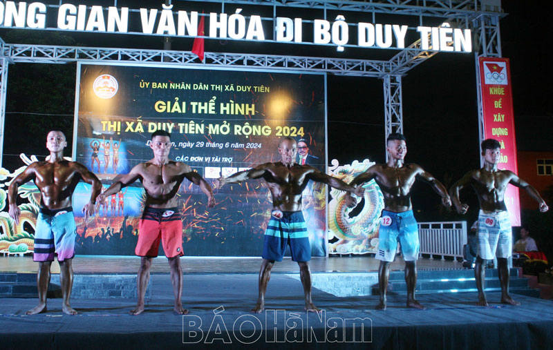 Trong không khí thi đua sôi nổi lập thành tích chào mừng kỷ niệm các ngày lễ lớn năm 2024, tối 29/6, tại Không gian văn hóa đi bộ thị xã Duy Tiên, UBND thị xã đã long trọng tổ chức Lễ khai mạc Giải Thể hình - Fitness thị xã Duy Tiên mở rộng năm 2024.