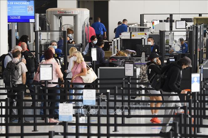 Hành khách tại khu vực kiểm tra an ninh ở sân bay quốc tế Los Angeles, California, Mỹ, ngày 4/6/2021.