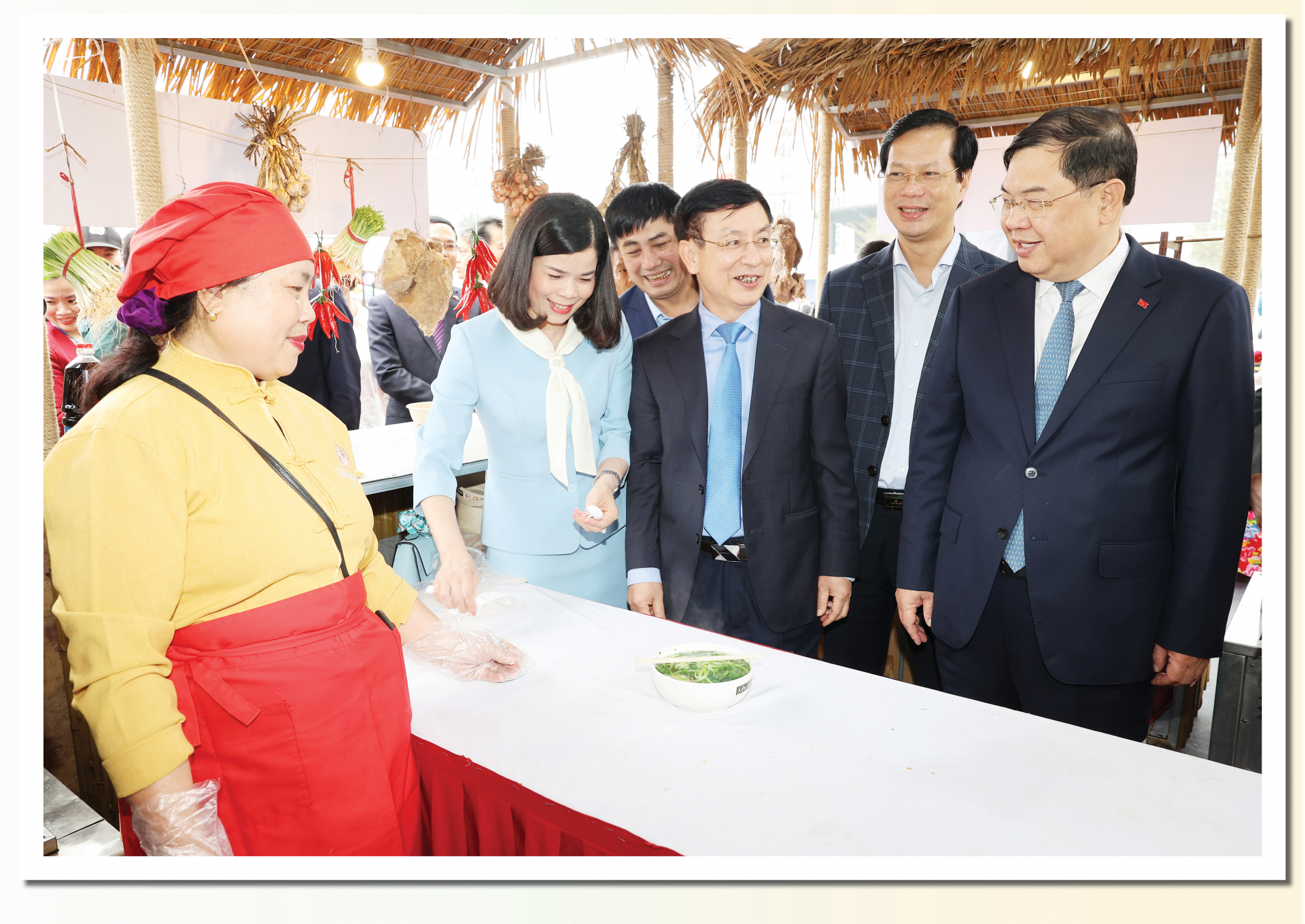 | Các đồng chí lãnh đạo tỉnh tham quan gian hàng Festival Phở. |