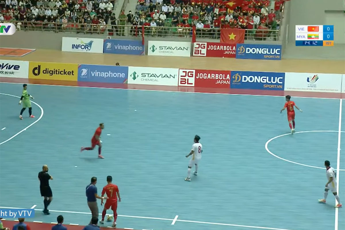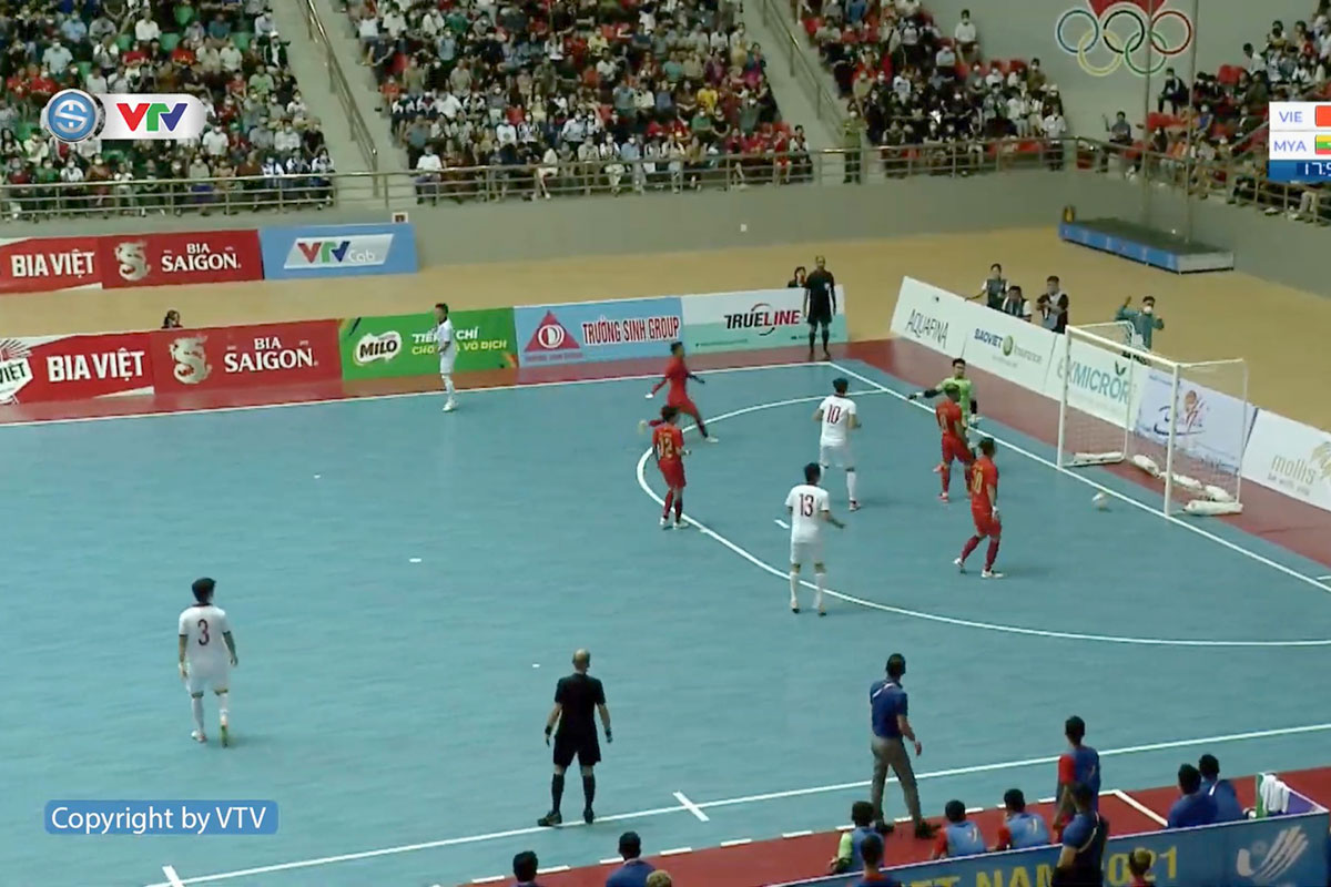 Thiếu chút nữa ĐT Futsal Việt Nam bị thủng lưới. Pha phá bóng của Mạnh Dũng lại đi đúng chân cầu thủ đội bạn, nhưng cú dứt điểm của cầu thủ bên phía Myanmar đã không chiến thắng được thủ môn Hồ Văn Ý.