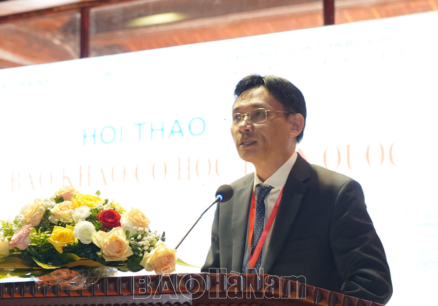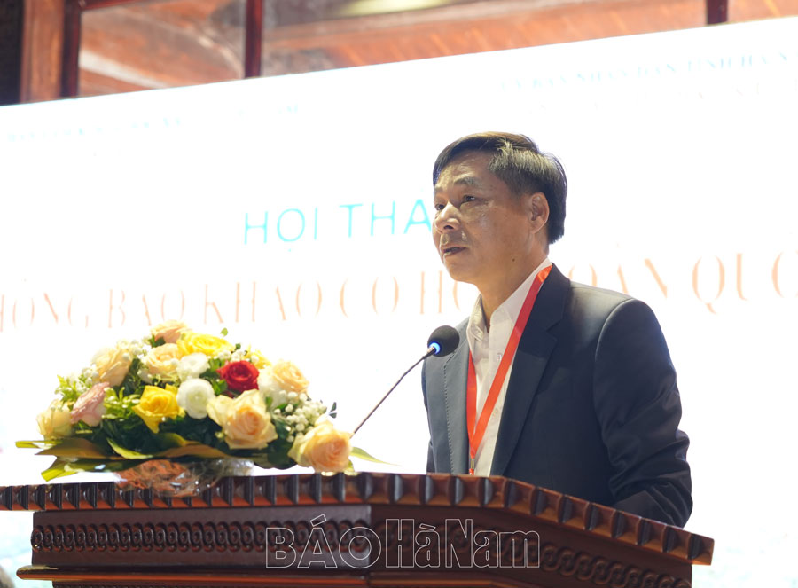 Phát biểu tại Hội thảo, đồng chí Nguyễn Anh Chức, Ủy viên BTV Tỉnh ủy, Phó Chủ tịch Thường trực UBND tỉnh thay mặt Tỉnh ủy, HĐND, UBND tỉnh Hà Nam chào mừng các đại biểu tham dự Hội thảo. Đồng chí nhấn mạnh, Hội thảo là hoạt động khoa học rất có ý nghĩa mang tầm quốc gia và quốc tế, đưa tri thức khảo cổ, lịch sử, văn hóa của các địa phương đến bạn bè trong nước và quốc tế, góp phần nâng cao nhận thức, trách nhiệm cộng đồng trong công cuộc bảo vệ, bảo tồn và phát huy giá trị di sản văn hóa dân tộc. Trên mảnh đất Hà Nam còn lưu giữ được rất nhiều hiện vật, cổ vật và bảo vật quý hiếm mang giá trị lịch sử, văn hóa cao, tiêu biểu như: Tượng Kinari, tượng Kim Cương thời Lý ở Chùa Đọi Sơn, cuốn sách bằng đồng có tên “Cầu Không kì tứ” niên hiệu Hồng Đức 2 ở Lý Nhân, cùng với đó là 4 Bảo vật quốc gia: Trống đồng Ngọc Lũ, trống đồng Tiên Nội dấu ấn thời kỳ phát triển rực rỡ nhất của nền văn minh Đông Sơn thời các vua Hùng dựng nước, Bia Sùng Thiện Diên Linh, Bia đá chùa Giàu.