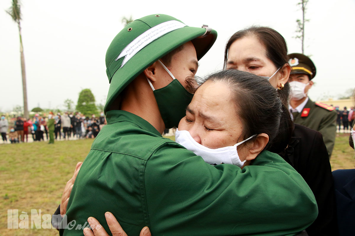 Lễ giao nhận quân tại huyện Bình Lục diễn ra nhanh, gọn, trang trọng, ấm áp và bảo đảm các quy định về phòng, chống dịch bệnh Covid-19.