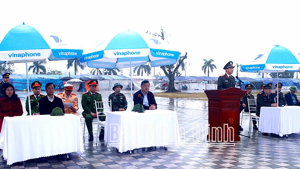 Phát biểu tại lễ xuất quân, đồng chí Bí thư Tỉnh ủy Phạm Gia Túc biểu dương Ban Tổ chức Lễ hội Khai ấn Đền Trần Xuân Quý Mão 2023; cán bộ, chiến sĩ Công an tỉnh và các lực lượng chức năng trong việc tổ chức, thực hiện nghiêm các văn bản chỉ đạo của Trung ương, của tỉnh liên quan đến tổ chức đón Tết Nguyên đán Quý Mão 2023 nói chung và công tác tổ chức, quản lý lễ hội đầu Xuân nói riêng; tình hình trật tự an toàn giao thông, an ninh trật tự được bảo đảm.