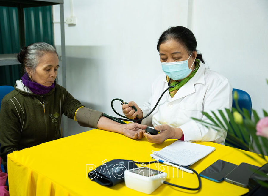 Kiểm tra huyết áp cho người dân tại chương trình.