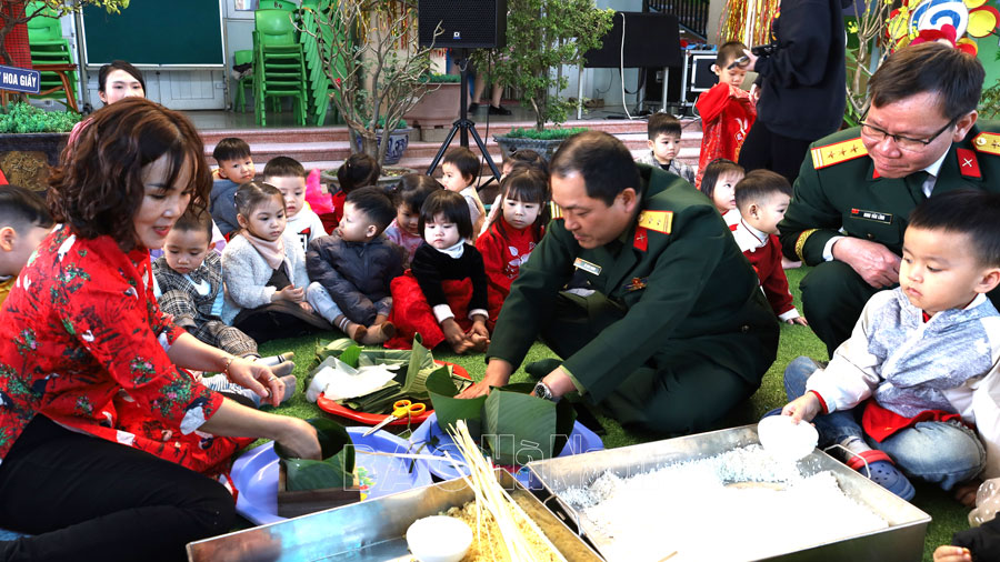 Chương trình “Xuân yêu thương - Tết sum vầy” được tổ chức với các hoạt động phong phú, hấp dẫn như: Giao lưu văn nghệ, trải nghiệm gói bánh chưng, trang trí không gian vui Tết, chơi trò chơi dân gian…
