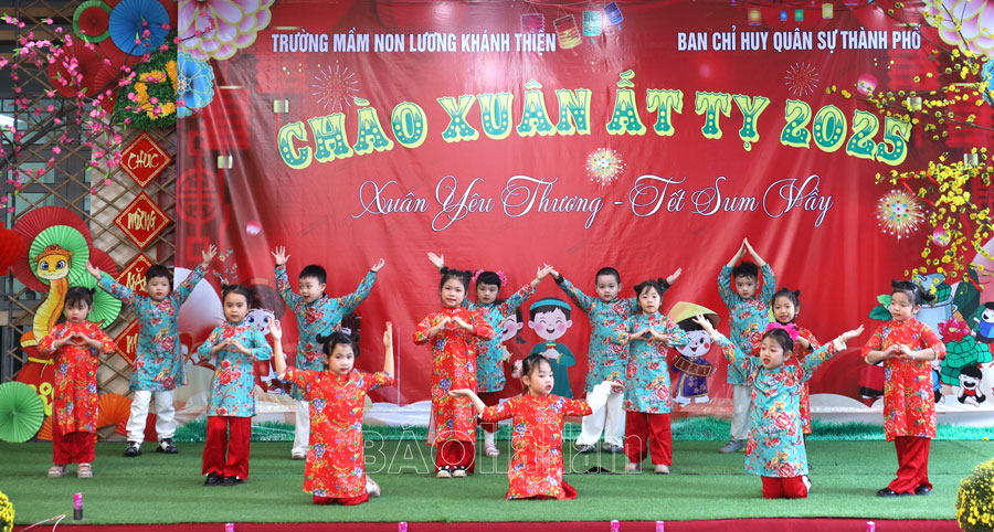 Gần 300 học sinh Trường Mầm non Lương Khánh Thiện tham gia chương trình “Xuân yêu thương - Tết sum vầy” năm 2025