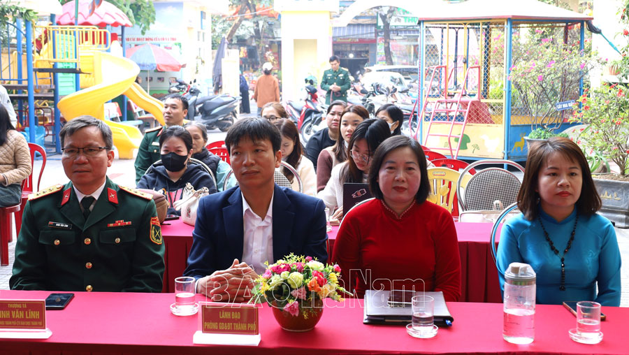 Dự chương trình có đại điện Ban CHQS thành phố, Phòng Giáo dục và Đào tạo thành phố, Ban Giám hiệu, cô giáo và các em học sinh nhà trường.