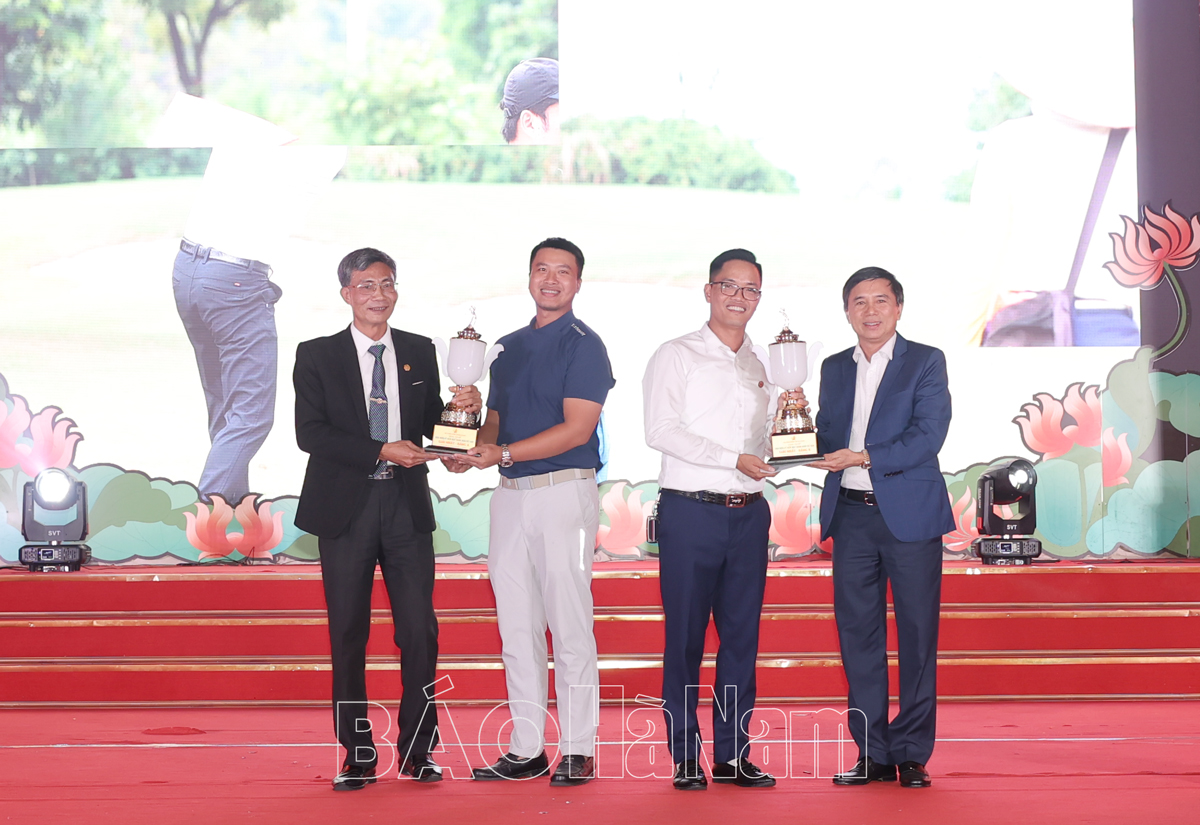 Ông Hoàng Bình Quân, nguyên Ủy viên Trung ương Đảng, nguyên Trưởng Ban Đối ngoại Trung ương, Chủ tịch danh dự Hội Doanh nhân trẻ Việt Nam trao giải Best gross.Đồng chí Trần Xuân Dưỡng, Tỉnh ủy viên, Phó Chủ tịch UBND tỉnh và ông Nguyễn Anh Tiến, Chủ tịch Hội Doanh nghiệp trẻ Hà Nam trao cup giải Nhất cho các golfer.Ban Tổ chức vinh danh và tri ân các nhà tài trợ kim cương.