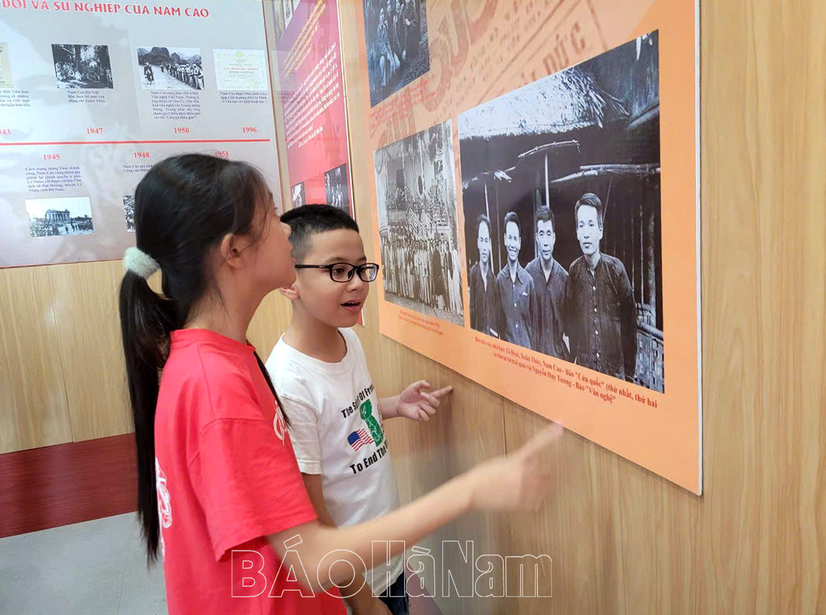 Con cháu chị Nguyễn Thị Xuân (TP.Phủ Lý) tham quan Khu lưu niệm nhà văn - Liệt sỹ Nam Cao (huyện Lý Nhân).