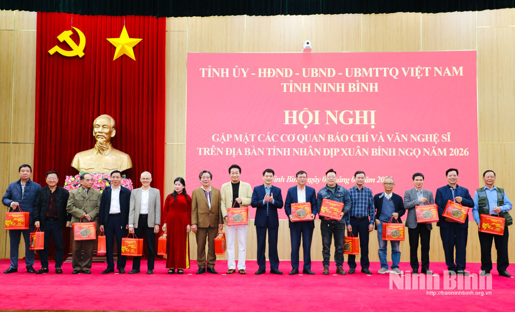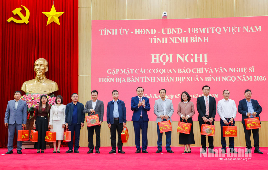 Chiều 5/2, Tỉnh ủy, HĐND, UBND, Ủy ban MTTQ Việt Nam tỉnh Ninh Bình tổ chức hội nghị gặp mặt các cơ quan báo chí và văn nghệ sĩ trên địa bàn tỉnh nhân dịp Xuân Bính Ngọ năm 2026. Đồng chí Đinh Thị Lụa, Phó Bí thư Thường trực Tỉnh ủy chủ trì hội nghị.
