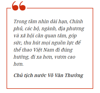 Đồng chí Võ Văn Thưởng nêu rõ: Trong tầm nhìn dài hạn, Chính phủ, các bộ, ngành, địa phương và xã hội cần quan tâm, góp sức, thu hút mọi nguồn lực để thể thao Việt Nam đi đúng hướng, đi xa hơn, vươn cao hơn. Nghiên cứu xây dựng hệ thống chính sách phù hợp để đẩy mạnh hiệu quả, chất lượng của thể thao thành tích cao; Kịp thời biểu dương, khen thưởng, có cơ chế đãi ngộ xứng đáng những thành tích mà các vận động viên đạt được; Tăng cường đào tạo, bồi dưỡng tài năng trẻ thể thao, thu hút các tài năng tham gia con đường thể thao chuyên nghiệp; chú trọng giáo dục phẩm chất, kiên quyết khắc phục những hiện tượng tiêu cực trong thể thao, góp phần xây dựng con người Việt Nam phát triển toàn diện.