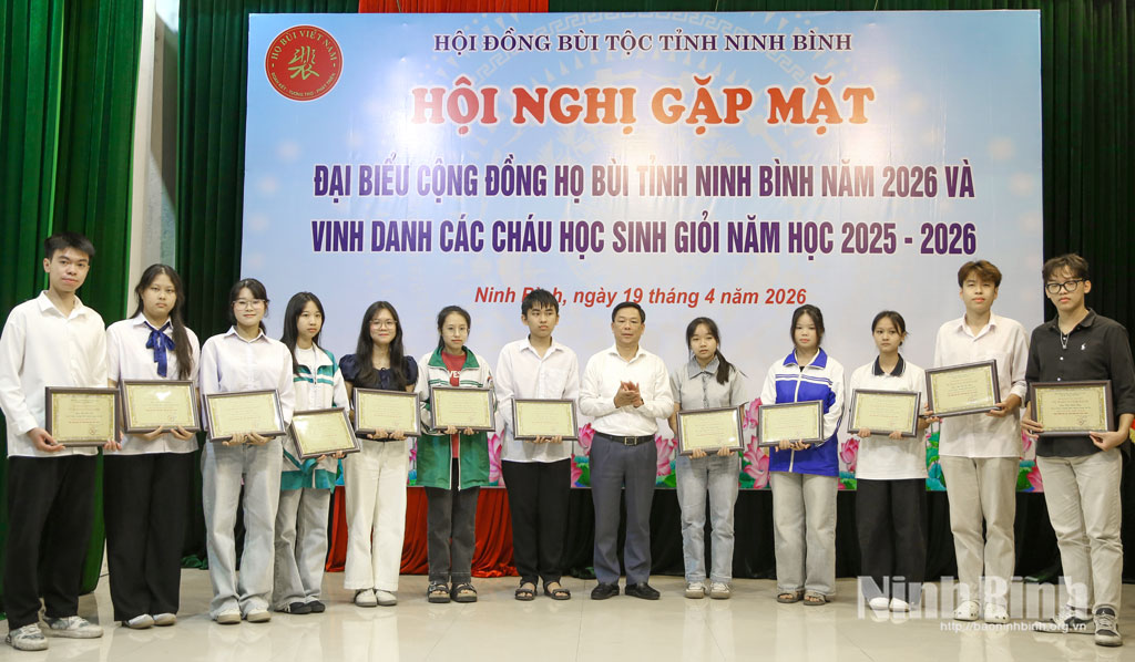 Sáng 19/4, tại phường Hoa Lư, Thường trực Hội đồng Bùi tộc tỉnh Ninh Bình tổ chức hội nghị gặp mặt đại biểu cộng đồng năm 2026 và vinh danh học sinh giỏi năm học 2025-2026.