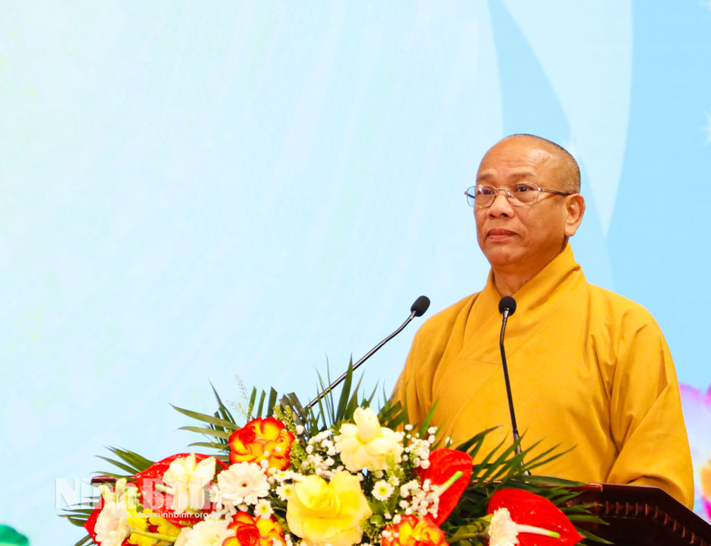 Hoà thượng Thích Quảng Hà, Phó Chủ tịch Hội đồng Trị sự Giáo hội Phật giáo Việt Nam, Trưởng Ban Trị sự Giáo hội Phật giáo Việt Nam tỉnh phát biểu tại buổi gặp mặt.