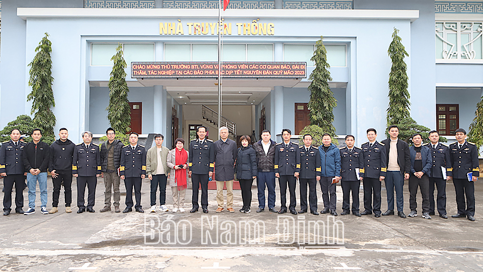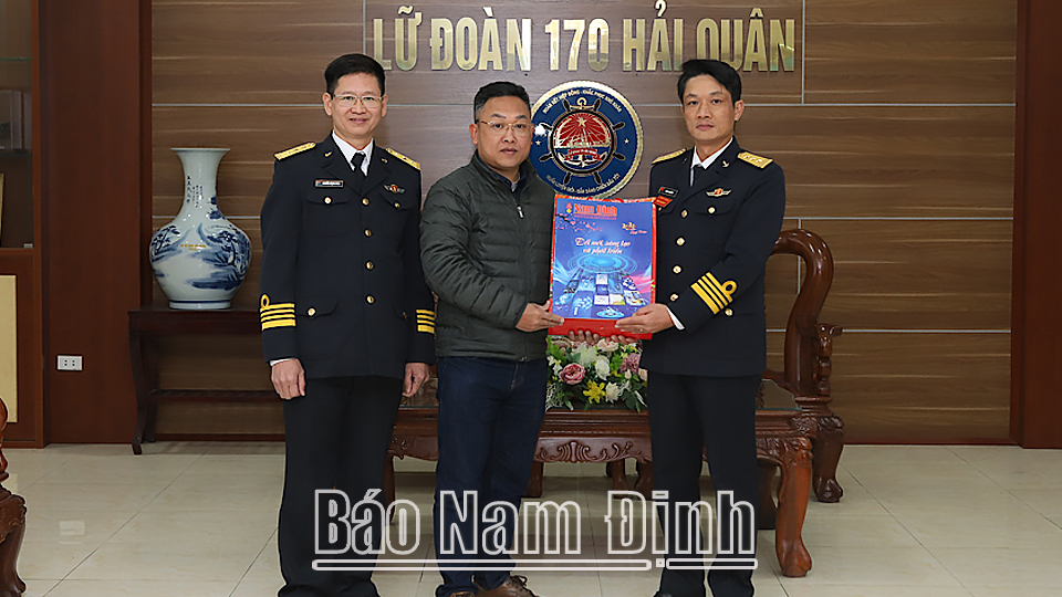 | Phóng viên Báo Nam Định trao tặng quà và Báo Xuân Quý Mão 2023 cho Lữ đoàn 170, Bộ Tư lệnh Vùng 1 Hải quân. |