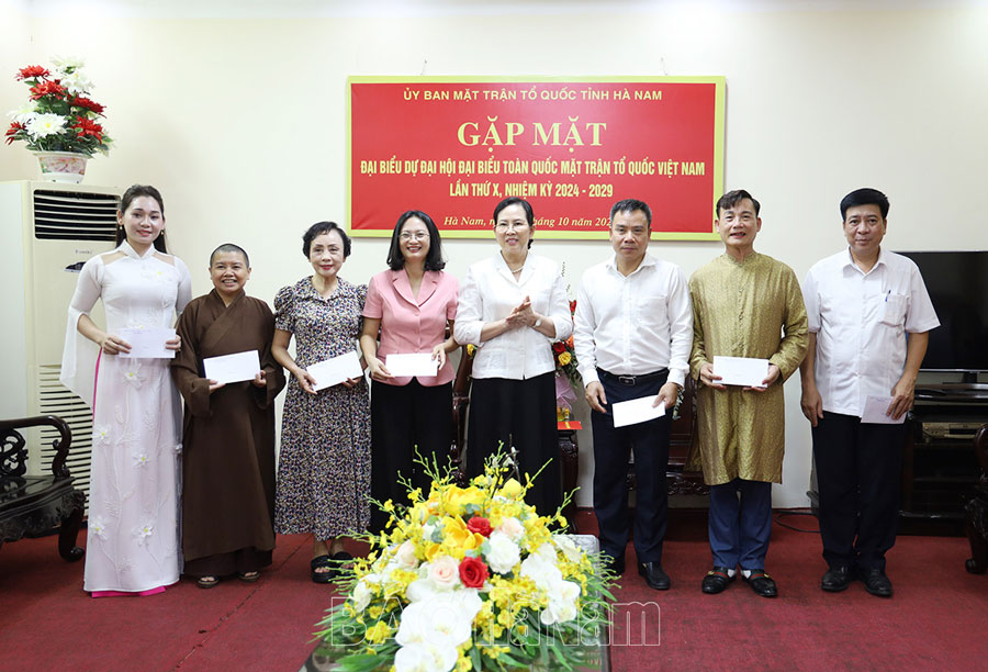 Với chủ đề “Đoàn kết - Dân chủ - Đổi mới - Sáng tạo - Phát triển”, Đại hội đại biểu toàn quốc MTTQ Việt Nam lần thứ X, nhiệm kỳ 2024 - 2029 sẽ được tổ chức từ ngày 16 - 18/10 tại Thủ đô Hà Nội, với sự tham dự của gần 1.400 đại biểu. Đoàn đại biểu MTTQ tỉnh Hà Nam có 8 đại biểu tham dự đại hội; trong đó, có 1 đại biểu đương nhiên, 1 đại biểu chỉ định và 6 đại biểu hiệp thương cử.