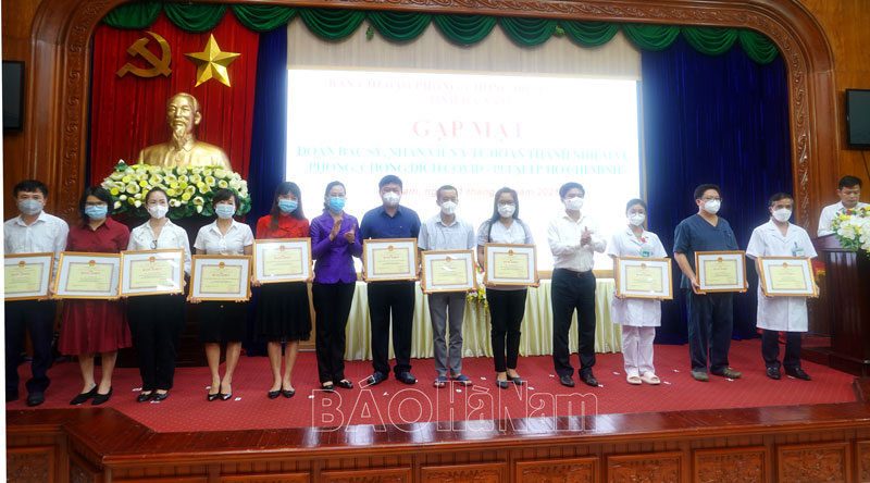 Tại buổi gặp mặt, UBND tỉnh đã tặng Bằng khen cho 6 cá nhân có thành tích xuất sắc trong thực hiện hỗ trợ phòng, chống dịch Covid-19 tại TP Hồ Chí Minh; 3 tập thể và 3 cá nhân có thành tích xuất sắc trong công tác thông tin tuyên truyền về phòng chống dịch Covid-19; trao quà cho 40 cán bộ, nhân viên y tế tham gia hỗ trợ phòng chống dịch tại TP HCM.