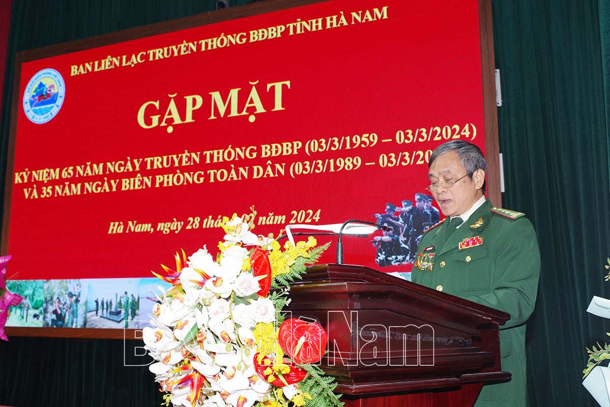 Đại diện Ban liên lạc truyền thống Bộ đội Biên phòng tỉnh phát biểu tại buổi gặp mặt.Các thế hệ bộ đội Biên phòng tỉnh Hà Nam dự gặp mặt.