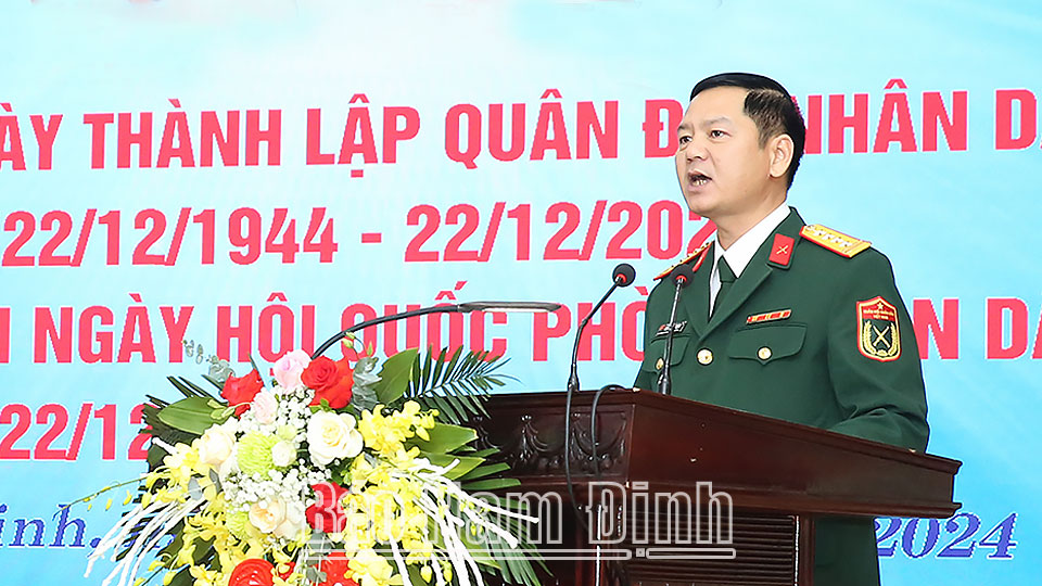 | Đồng chí Đại tá Nguyễn Bá Thịnh, Ủy viên Ban TVTU, Chỉ huy trưởng Bộ CHQS tỉnh phát biểu tại buổi gặp mặt. |