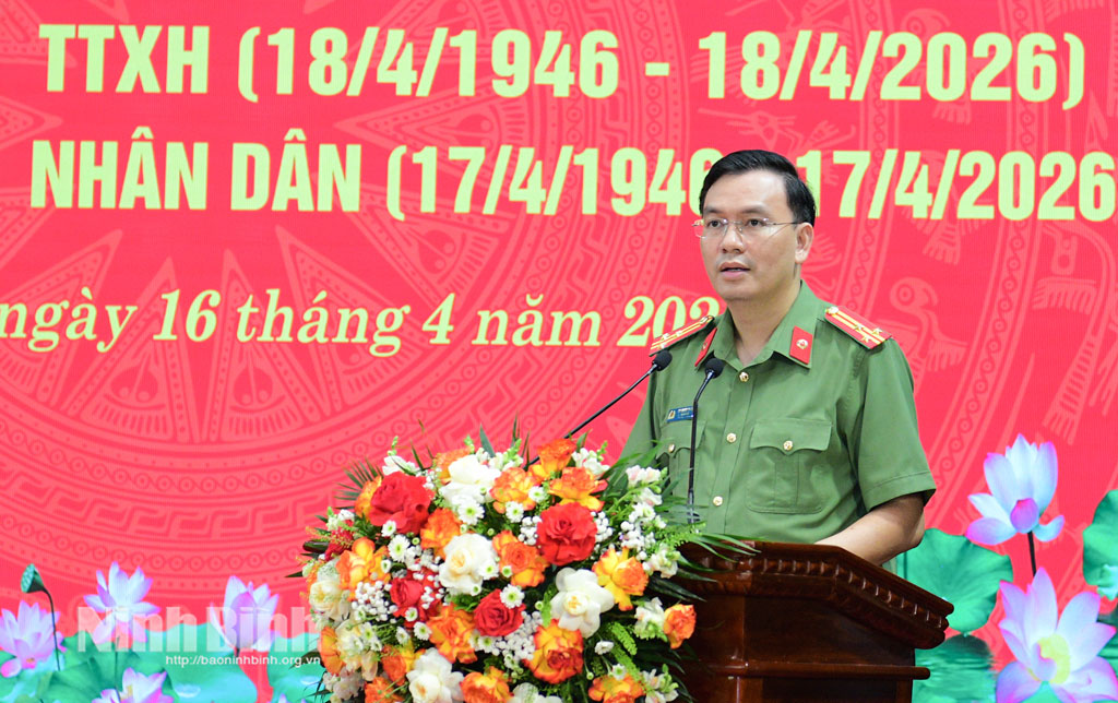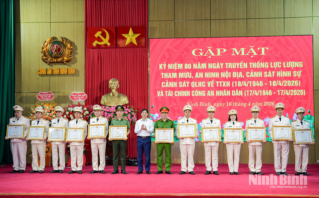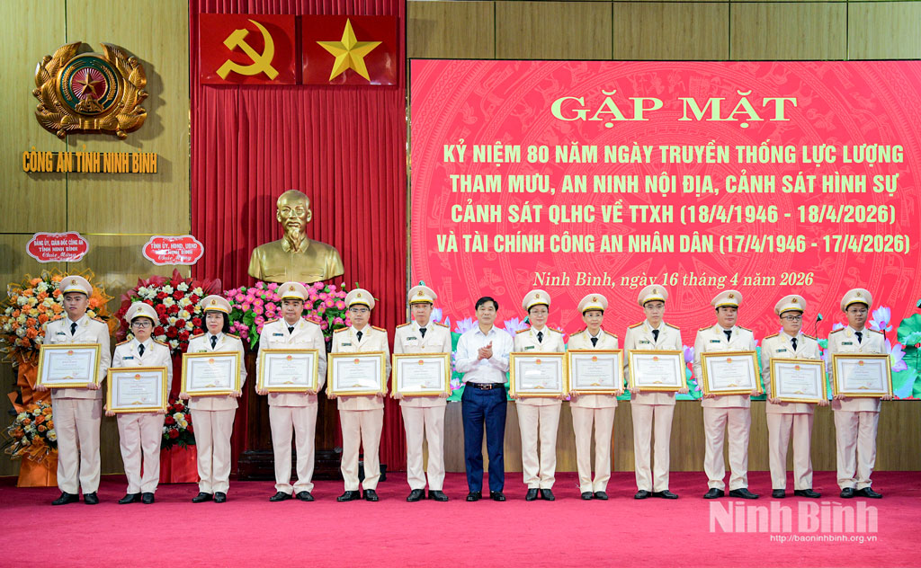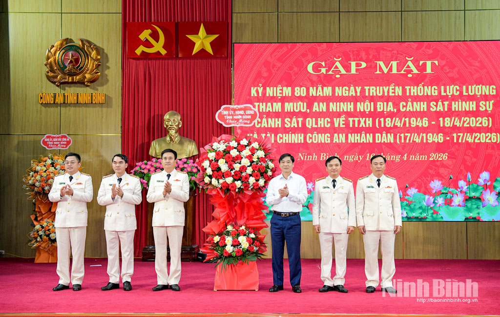 Chiều 16/4, Công an tỉnh trang trọng tổ chức gặp mặt kỷ niệm 80 năm Ngày truyền thống các lực lượng Tham mưu, An ninh nội địa, Cảnh sát hình sự, Cảnh sát quản lý hành chính về trật tự xã hội (18/4/1946-18/4/2026) và Tài chính Công an nhân dân (17/4/1946-17/4/2026). Dự lễ kỷ niệm có các đồng chí: Nguyễn Anh Chức, Ủy viên Ban Thường vụ Tỉnh uỷ, Phó Chủ tịch UBND tỉnh; Thượng tá Cù Quốc Thắng, Ủy viên Ban Thường vụ Tỉnh ủy, Giám đốc Công an tỉnh.