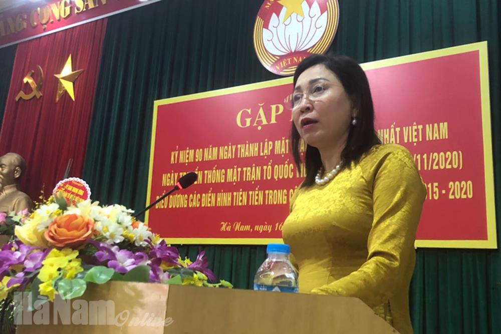 Tại buổi gặp mặt các đại biểu đã cùng ôn lại truyền thống vẻ vang của Mặt trận Dân tộc thống nhất Việt Nam; truyền thống MTTQ tỉnh Hà Nam. Phát huy truyền thống vùng đất văn hiến, giàu truyền thống cách mạng, 90 năm xây dựng, trưởng thành, dưới sự lãnh đạo của cấp ủy các cấp, MTTQ và đội ngũ cán bộ làm công tác mặt trận từ tỉnh đến cơ sở luôn nêu cao bản lĩnh chính trị, đoàn kết thống nhất vượt qua mọi khó khăn, hoàn thành xuất sắc nhiệm vụ được giao. Từ khi tái lập tỉnh đến nay, MTTQ các cấp không ngừng đổi mới nội dung, phương thức hoạt động, đa dạng các hình thức vận động, tập hợp, xây dựng khối đại đoàn kết toàn dân, tập trung hướng mạnh về địa bàn khu dân cư, tuyên truyền vận động nhân dân thực hiện chủ trương, chính sách của Đảng, pháp luật Nhà nước; tích cực tham gia hưởng ứng các phong trào thi đua yêu nước, các cuộc vận động tại địa phương.